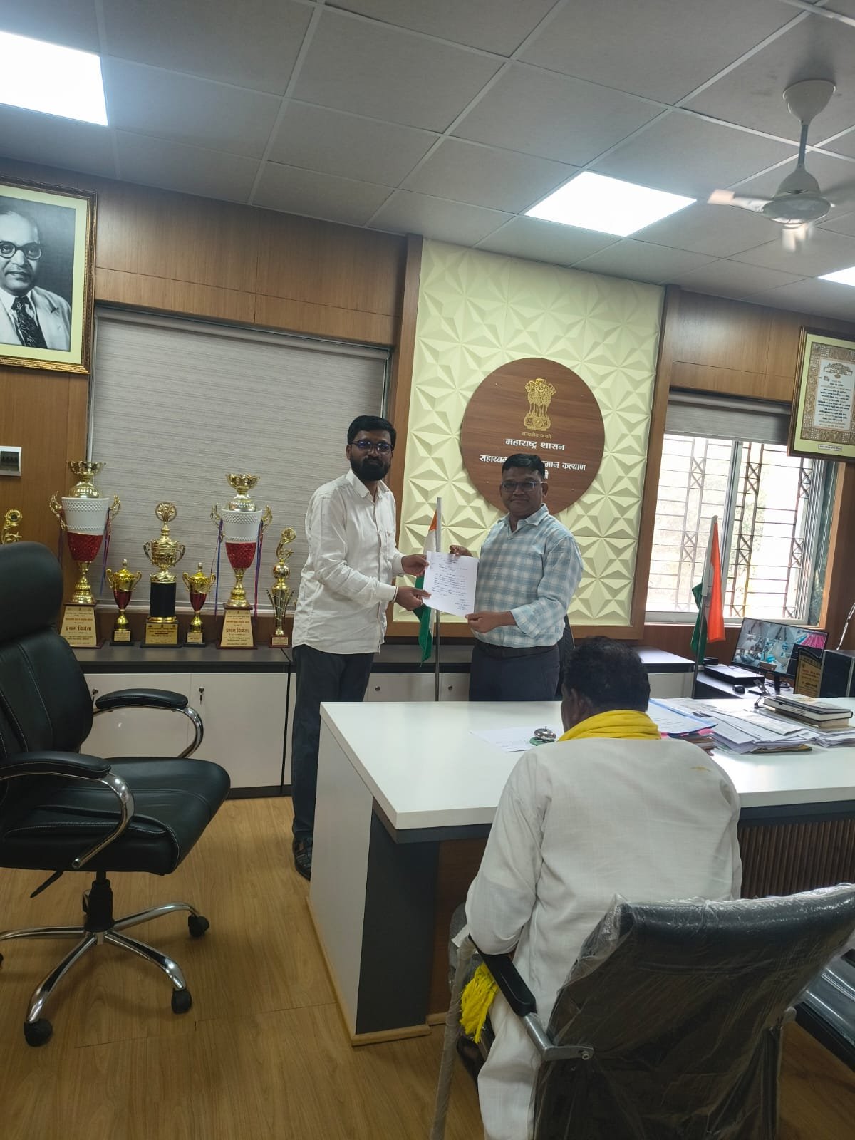 *अहेरी:-* रमाई आवास योजनेचा अनुदान तत्काळ उपलब्ध करून लाभार्थ्यांना द्यावे अशी मागणी सामाजिक कार्यकर्ते तथा नगरसेवक अमोल मुक्कावार यांनी समाज कल्याण गडचिरोलीचे सहाय्यक आयुक्त यांना निवेदन देऊन मागणी केली आहे.