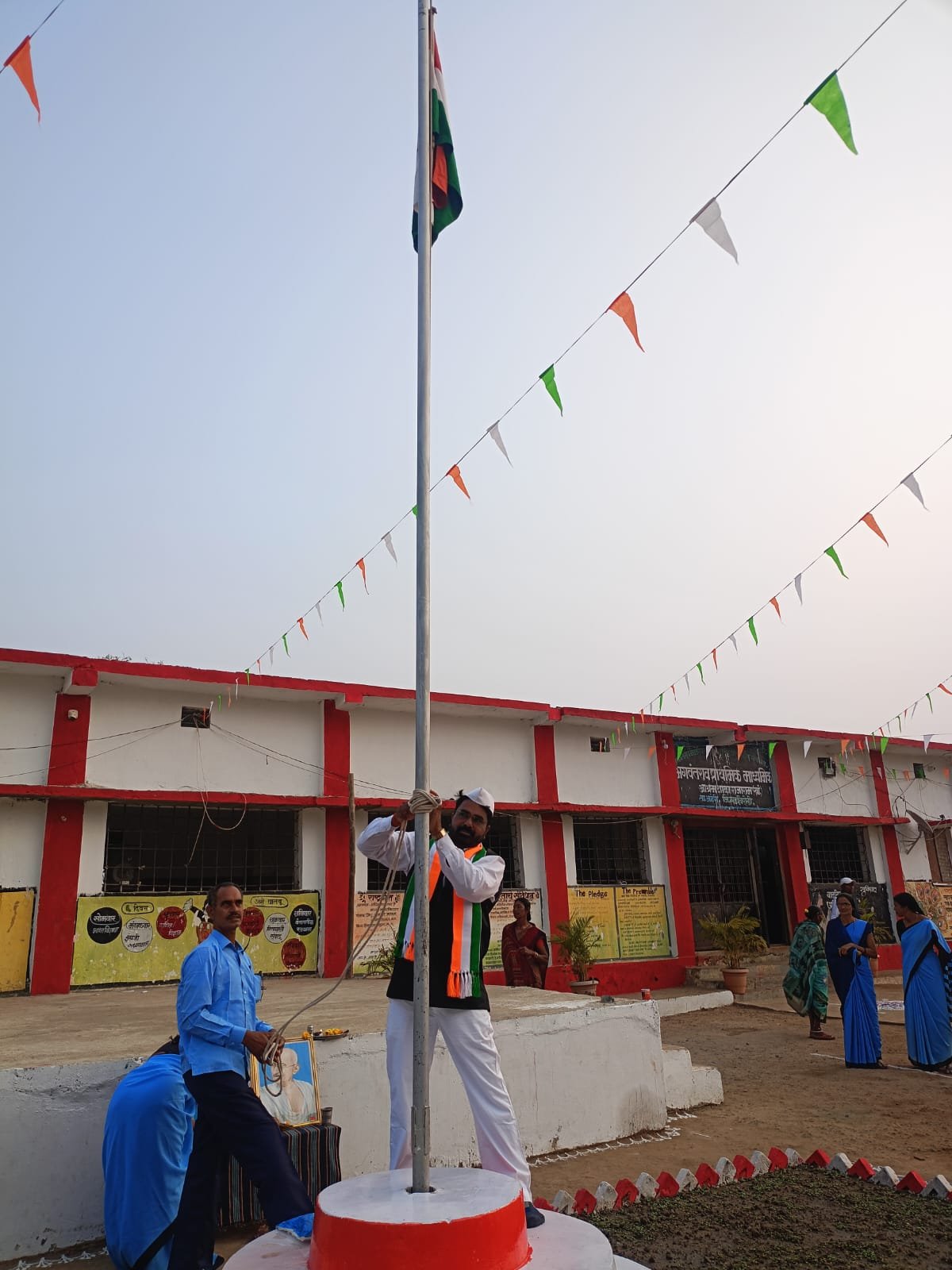 आरोग्य पथक राजाराम येते डॉ, राजेश मानकर यांचे शुभ हस्ते ध्वजारोहण कार्यक्रम पार पाडण्यात आले आहे. या वेळी उपस्थित प्रभारी पोलीस अधिकारी आनंद आवारे साहेब, उपनिरीक्षक राकेश बुराम साहेब, मुख्यध्यापक तिरुपती ओडनालवार, नंदकिशोर पुण्यमूर्तीवार,शिक्षकवर्ग, विध्यार्थी उपस्थित. तर आरोग्य विभागातील औषधी निर्माता मयूर बंगाले, स्वप्नील वंजारी,कु, स्वेता वालदे,कु, निता रामटेके, प्रफुल सिडाम, आरोग्य सेवक, आशा वर्कर शीतल पोरतेट उपस्थित होते.