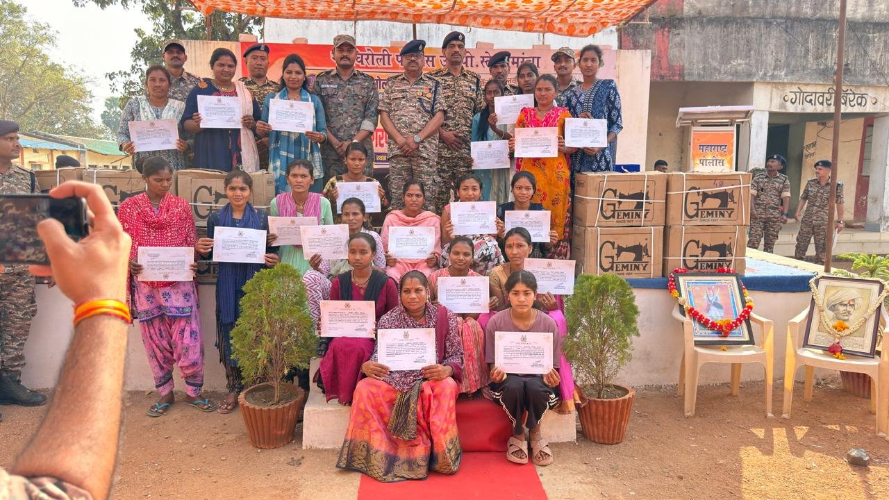 आज ०२/०२/२०२६ रोजी, दामरांचा, अहेरी, गडचिरोली (महाराष्ट्र) येथे, नक्षलग्रस्त ग्रामीण आदिवासी महिलांच्या उत्थानासाठी नागरी कृती कार्यक्रम २०२५-२०२६ अंतर्गत, केंद्रीय राखीव पोलिस दल (सीआरपीएफ) आणि महाराष्ट्र पोलिस, एसपीएस दामरांचा परिसर येथे, कमांडंट, ०९ बटालियन, केंद्रीय राखीव पोलिस दल, श्री शंभू कुमार, ०९ बटालियन, श्री सत्य नारायण मीना, ०९ सीआरपी, एसपीएस दामरांचाचे सहाय्यक कमांडंट आणि स्टेशन हाऊस ऑफिसर श्री योगेश राठोड यांच्या मार्गदर्शनाखाली, सर्व पोलिस दलाचे सदस्य आणि श्रीमती पुष्पा तलांडी, उपसरपंच, ग्रामपंचायत कुरुमपल्ली यांच्या उपस्थितीत, शिवणकाम प्रशिक्षणानंतर, सामुदायिक स्वयंपाकघरासाठी शिलाई मशीन, खुर्च्या, भांडी, कढई, लाडू, स्पॅटुला इत्यादींचे वितरण यशस्वीरित्या संपन्न झाले.