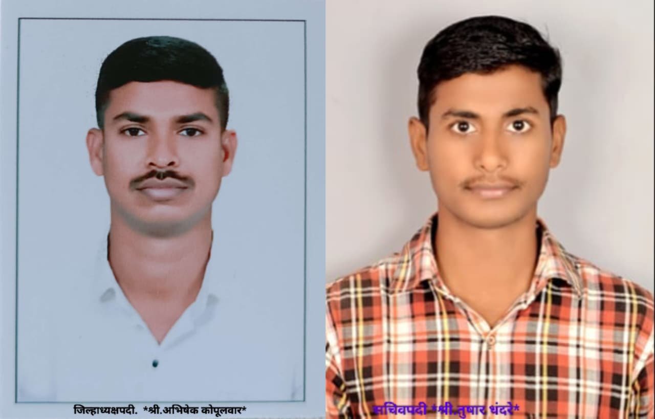 श्री.अभिषेक कोपुलवार यांची गडचिरोली जिल्हा अध्यक्ष म्हणून एकमताने निवड करण्यात आली आहे. जिल्हा उपाध्यक्ष पदी श्री. किशोर पुंगाटी, श्री.प्रविण मेश्राम कार्याध्यक्ष पदी श्री.चंद्रकांत वेलादी सचिवपदी श्री.तुषार धंदरे सहसचिव पदी श्री. पूर्णानंद सोनजाल, कु.वनिता हिचामी खजिनदारपदी श्री.शुभम कोंडे जिल्हा संघटकपदीश्री.मनोज महाका, श्री.निखिल हिचामी, श्री.प्रशांत कवळो, श्री.सुरेंद्र मडावी, श्री.केशव कोवसे यांची निवड झाली आहे. तसेच जिल्हा सदस्य श्रीमती.सौ.प्रियांका वांढरे (रासेकर), श्री. करणसिंग तुलावी, श्री. अनिल हिचामी, श्री. संतोष गैनवार, श्री. सौ.प्रणाली गैनवार, श्री. सुरज मेश्राम, श्री. संतोष पुंगाटी, श्री. कारण पेंदाम,