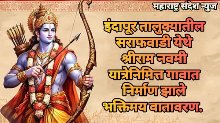 महाराष्ट्र संदेश न्युज ! ऑनलाईन इंदापूर:- तालुक्यातील सराफवाडी येथे प्रभू श्रीराम नवमी यात्रेनिमित्त गावात भक्तिमय वातावरण निर्माण झाले होते. रामनवमी म्हणजेच प्रभू श्रीराम यांचा जन्मदिवस हा दिवस अधर्मावर धर्माच्या विजयाचे प्रतीक आहे. त्यामुळे सराफवाडी येथे रामनवमीच्या दिवशी अनेक ठिकाणी शोभायात्रा आणि भजन-कीर्तन महाप्रसादाचे आयोजन करण्यात आले होते.