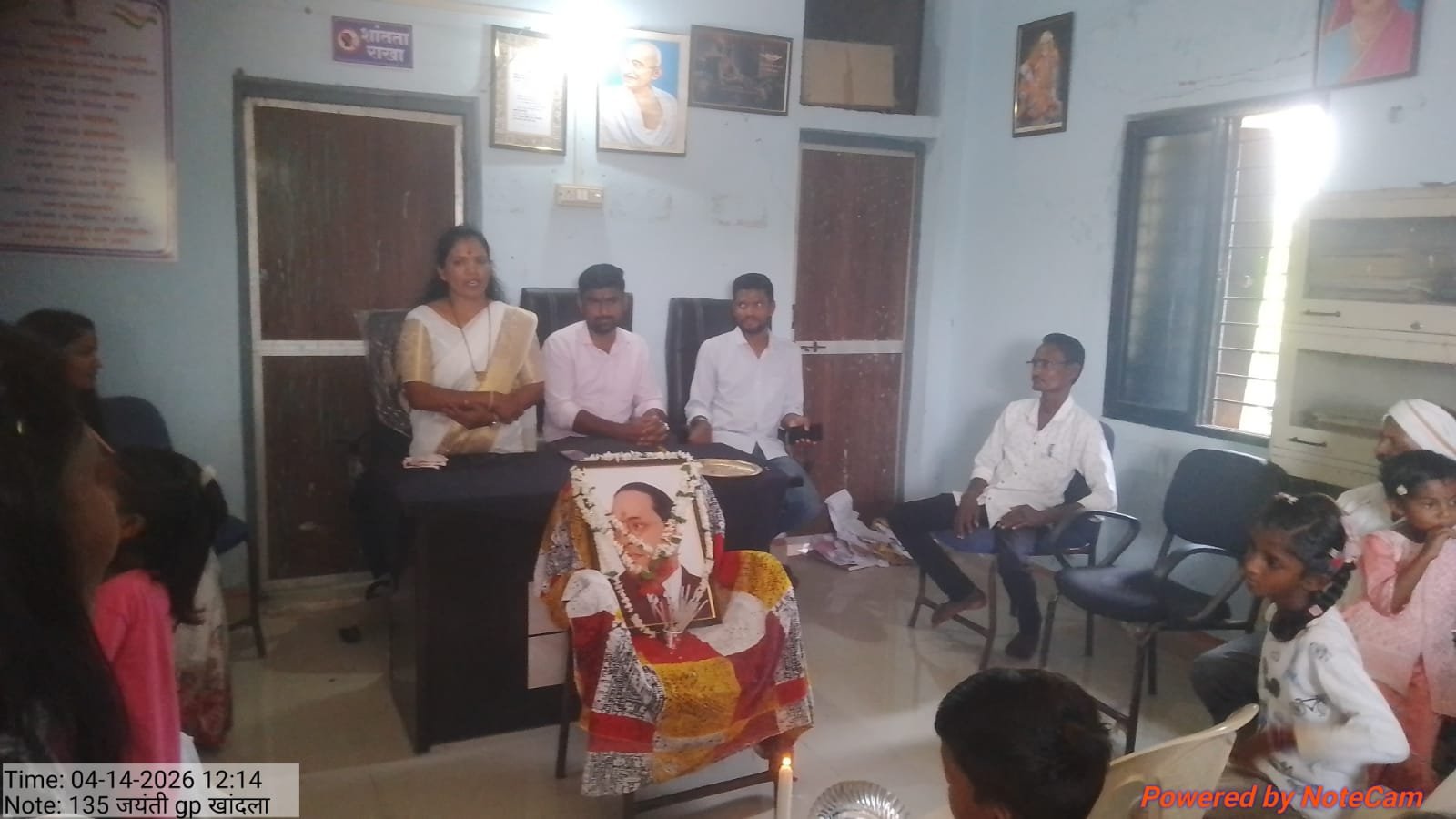 अहेरी तालुक्यातील राजाराम जवळील खांदला येथे संविधानाने जनक, परमपूज्य, दलितांचे कैवारी, महामानव डॉ, बाबासाहेब आंबेडकर यांची १३५वी जयंती मोठया ताठामाठात साजरा करण्यात आले. या वेळी डॉ, बाबासाहेब आंबेडकर यांच्या प्रतिमेला माल्याअर्पण करून बाबासाहेब आंबेडकर यांच्या जीवनावर आधारित भाषण देण्यात आले. या वेळी उपस्थित आयु,सामाजिक कार्यकर्ते वंदना अलोणे,आरोग्य सेविका स्वाती मॅडम, आरोग्य सेवक, मयूर मेश्राम,ग्रामपंचायतचे ग्रामसेवक, पी. पी. झाडे उपस्थित होते तर गावातील नागरिक संतोष झाडे, विक्रम दुर्गे, सुजाता दुर्गे, संजना दुर्गे, मंजुळा दुर्गे, संगीता दुर्गे, शारदा झाडे, राजेश गोवर्धन, सुरेंद्र गोवर्धन, आदी बौध्द उपासक, उपासिका मोठया प्रमाणात उपस्थित होते.