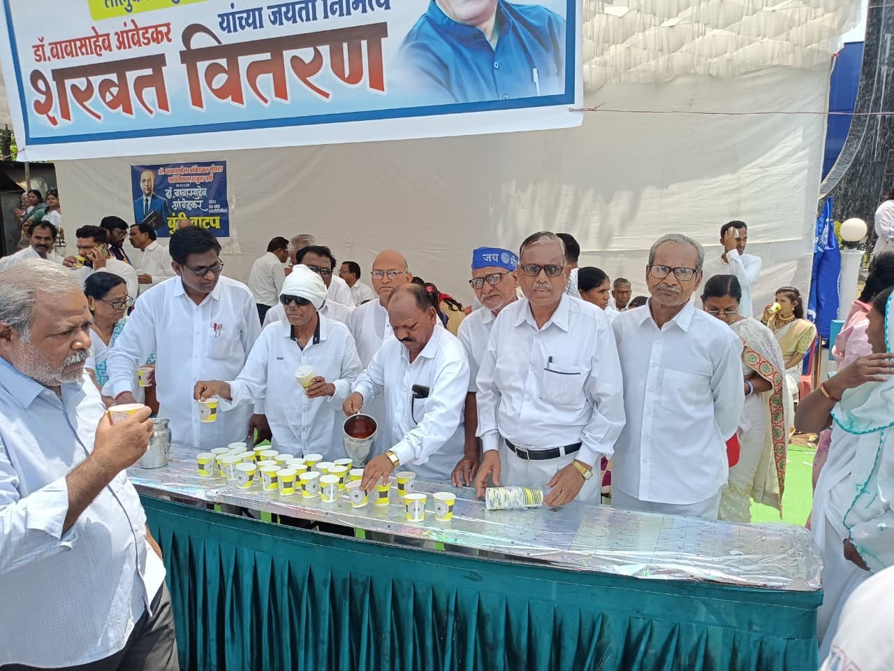नंतर सर्व पदाधिकारी यांनी वंचित बहुजन आघाडी कडून शरबत वितरण करण्यात आले, या वेळी खूप मोठ्या प्रमाणात सर्व अनुयायांनी शरबत वितरण चा लाभ घेतला, शरबत वितरण करण्यासाठी वंचित बहुजन आघाडी चे जिल्हा सदस्य सच्चिदानंद रामटेके, तालुका महासचिव नागोराव पडवेकर, तालुका उपाध्यक्ष ऋषी रायपुरे, मुरलीधर ताकसांडे, प्रभुदास वनकर, चरणदास झाडे, बाळू जुलमे, मारोती घागरगुंडे, कवडुजी वाघमारे, दिलीप लाकडे, विठ्ठल धोटे, अशोक महेशकर, धर्मु नगराडे, गौतम देवगडे,राजू मावडनकर, भिमराव खोब्रागडे, लोपचंद झाडे, हा कार्यक्रम यशस्वी करण्यासाठी या सर्व पदाधिका-याचं खूप मोलाच सहकार्य मिळाले, या आजच्या कार्यक्रमाचं उत्कृष्ट संचालन रमेशभाऊ नळे यांनी केले, तर आभार प्रदर्शन सच्चिदानंद रामटेके साहेब यांनी सर्वांचे आभार मानले,