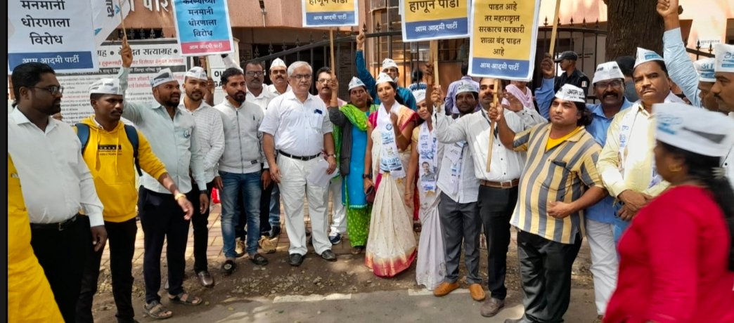 नव्या शैक्षणिक धोरणाचा गाजावाजा करत शिक्षणाचे सार्वत्रीकरण करत असल्याचे सांगताना आर्थिक दृष्ट्या कमकुवत व वंचित वर्गासाठी सोयीच्या, तसेच नजीकच्या अंतरात असल्याने अधिक सुरक्षित सरकारी शाळा बंद करून गरिबांच्या संधीची उपलब्धता कमी करणे असे दुटप्पी धोरण आपले सरकार राबवत आहे. खरेतर या शाळा अधीक उत्तम कश्या करता येतील हे पाहणे गरजेचे आहे. कधी १० पट हा अपुरा ठरवणे तर कधी २० चा पट कमी ठरवणे अश्या विसंगती पूर्ण धोरणांमुळे आपले खूप नुकसान होत आहेव भविष्यात दीर्घकालीन तोटे होतील म्हणून आम आदमी पार्टी या शाळाबंद च्या धोरणास विरोध करीत आहे . हे धोरण जबरदस्तीने लादण्याचा प्रयत्न केल्यास न्यायालयीन व रस्त्यावरील आंदोलनातून आम आदमी पार्टी विरोध करेल असा इशारा आप ने दिला आहे. या वेळेस आप जिल्हा अध्यक्ष मुकुंद किर्दत व ललिता गायकवाड, नीलेश वांजळे, सिमा गुट्टे, सुरेखा भोसले, सतिश यादव, अनिल कोंढाळकर, सुनीता सेरखाने, शंकर थोरात, सूर्यकांत कांबळे, डॉ किशोर शहाणे, दिलीप गायकवाड, अमोल काळे, अक्षय शिंदे, साहिल जवळेकर, श्रीकांत चांदणे, रवी लाटे, उल्हास जाधव, तानाजी सेरखाने, तुकाराम शिंदे, राजेंद्र साळवे, गंगाराम खरात, अजिंक्य जगदाळे, ॲड मनोज माने, व्यंकट आडरराव, रामभाऊ इंगळे, गजानन भोसले, संजय कटारनवरे, शिवाजी डोलारे,संदेश दिवेकर, अजिंक्य शेडगे, प्रशांत कांबळे, राकेश कांबळे आदी पदाधिकारी,कार्यकर्ते उपस्थित होते.