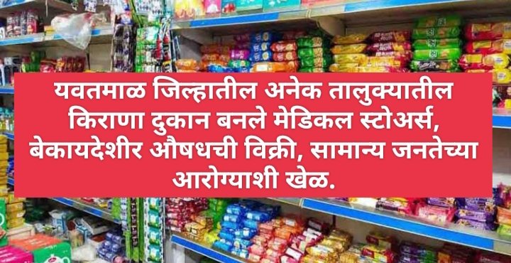 यवतमाळ:- जिल्हातील अनेक तालुक्यात बदलत्या वातावरणामुळे रुग्णांची संख्या मोठ्या प्रमाणावर वाढली आहे. याचा फायदा घेत ग्रामीण भागात काही पानटपऱ्यांसह किराणा दुकानात सुद्धा औषधी गोळ्यांची विक्री होत असल्याची धक्कादायक बाब समोर आली आहे.