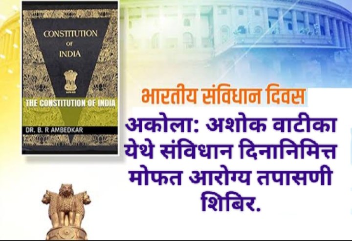 अकोला:- संविधान दिनानिमित्त मोफत आरोग्य तपासणी शिबिर संकल्प कला क्रीडा व बहुउद्देशीय शिक्षण संस्था अकोला तथा बायजुस ट्युशन सेंटर अकोला व महाराष्ट्र राज्य रुग्णसेवक व श्रमिक कामगार संघटना महाराष्ट्र राज्य तसेच भाग्योदय आरोग्य व बहुद्देशीय शिक्षण संस्थेच्या लिंक वर्कर स्कीम यांच्या संयुक्त विद्यमाने अशोक वाटीका येथे, २६ नोव्हेंबर २०२२ रोजी सकाळी ११:०० ते सायंकाळी ०५:०० वाजेपर्यंत आयोजित करण्यात आले आहे.