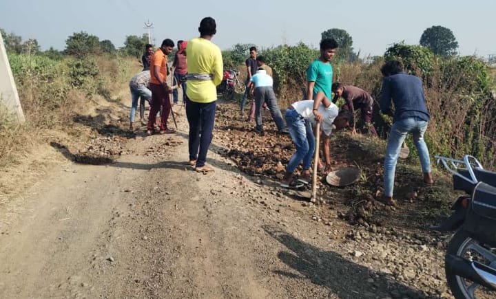 इरई ते कवठाळा रस्त्यावर मोठ्या प्रमाणात खड्डे, प्रशासन व जनप्रतिनिधी कुंभकर्णी झोपेत. युवकांनी बुजवले खड्डे.