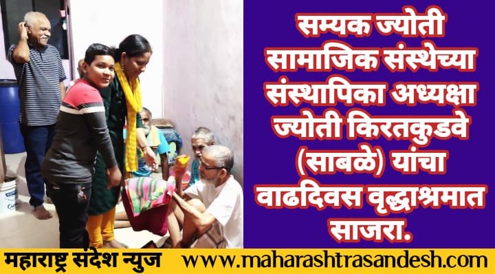 महाराष्ट्र संदेश न्युज ! ऑनलाईन मुंबई:- जगभरात नाताळ सण साजरा होत आहे व याच दिवशी दिनांक २५ डिसेम्बर २०२२ ला सम्यक ज्योती सामाजिक संस्थेच्या संस्थापिका / अध्यक्षा ज्योती किरतकुडवे (साबळे) यांनी त्यांच्या वाढदिवसानिमित दिवा येथील ‘अपना घर’ या वृद्धाश्रमाला भेट देऊन आपला वाढदिवस साजरा केला.