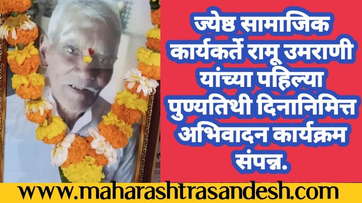 महाराष्ट्र संदेश न्युज ! ऑनलाईन सांगली:- जिल्हातील जत तालुक्यातील उमराणी गावचे सुपुत्र आणि उमराणी गावचे माजी पंचायत समिती सदस्य आणि ज्येष्ठ सामाजिक कार्यकर्ते रामू चंद्रप्पा उमराणी यांच्या पहिल्या पुण्यतिथी दिनानिमित्त अभिवादनाचा कार्यक्रम आयोजित करण्यात आला होता.